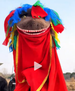 图:郎溪娃娃鱼狮,截图自:抖音@阿仁在大山,2026年2月12日发布