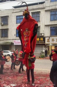 傩神会沿着村里的路走动,