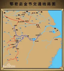 图:鄂君启金节交通路线图,源自:战国鄂君启金节图册_百度百科