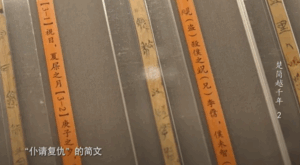 图|望山桥墓出土竹简,截图自记录片《楚简越千年》
