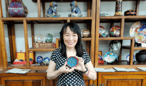 在北京珐琅厂,我坐在点蓝的长桌前,